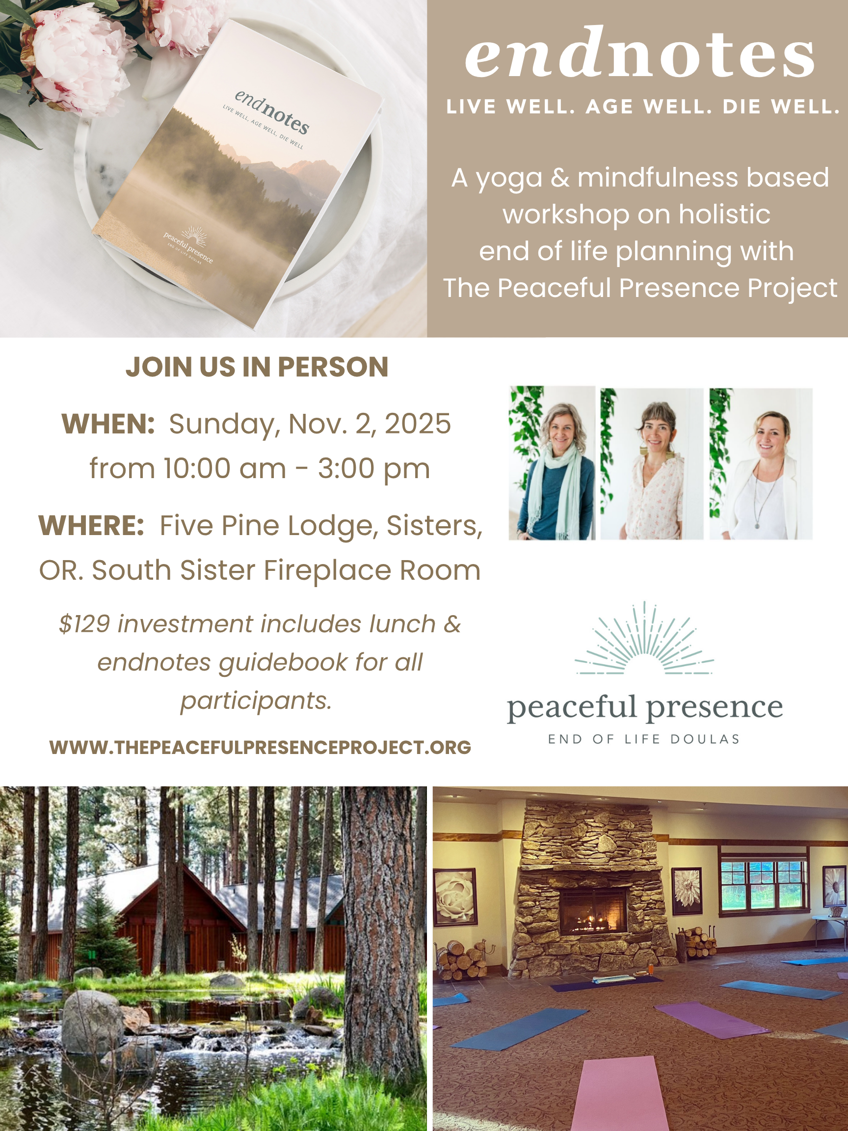 A yoga & mindfulness based workshop on holistic end of life planning with The Peaceful Presence Project.